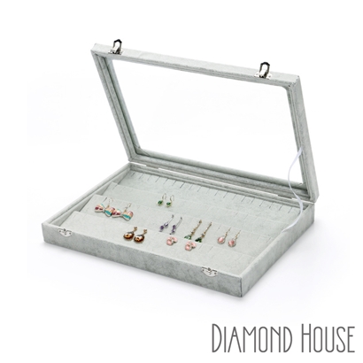 冰花絨耳環耳釘珠寶收納盒 灰 |