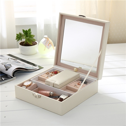 納帕刺繡紋方形珠寶飾品收納盒 |