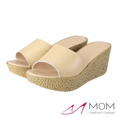 繽紛糖果色基本款坡跟真牛皮高跟拖鞋 米 |