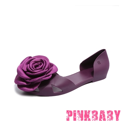 綢緞玫瑰花朵縷空防水果凍涼鞋 3色任選 |