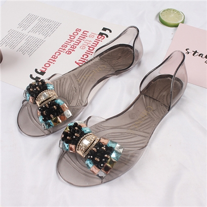 蝴蝶結串珠飾防水果凍涼鞋 黑/金 |