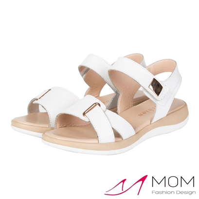 真皮時尚V型線條舒適魔鬼粘厚底涼鞋 白 |