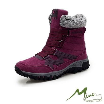保暖防寒防滑機能時尚車線造型戶外休閒雪靴 紫紅 |