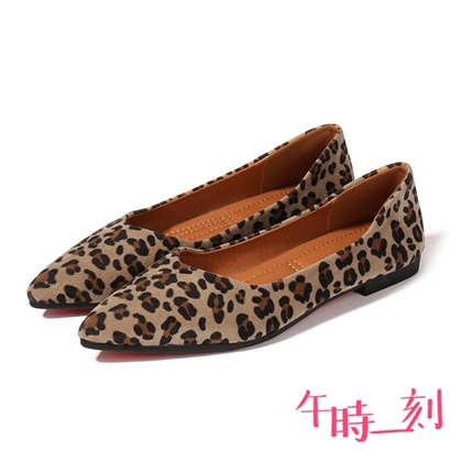 性感豹紋尖頭舒適低跟便鞋 卡其 |