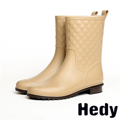 時尚經典菱格紋百搭中筒雨靴 米 |