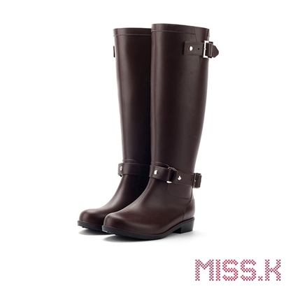 個性韓版釦飾時尚高筒防滑耐磨雨靴 棕 |