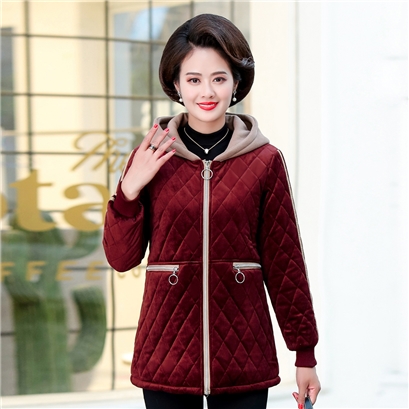 質感金絲絨面菱格車線修身時尚連帽休閒外套 (3色可選) |