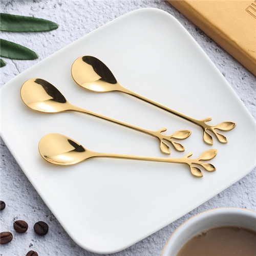 歐式復古不繡鋼金色樹葉造型茶匙 多項組合任選 |