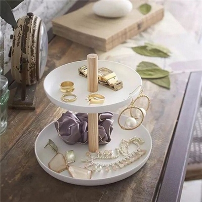 北歐風雙層飾品小物收納盤 點心盤 白 |