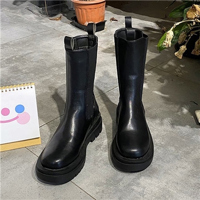 時尚英倫風個性復古中筒切爾西靴 黑 |