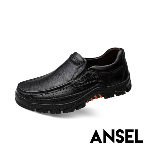 全真皮頭層牛皮機能防滑厚底手工縫線休閒鞋 黑 |
