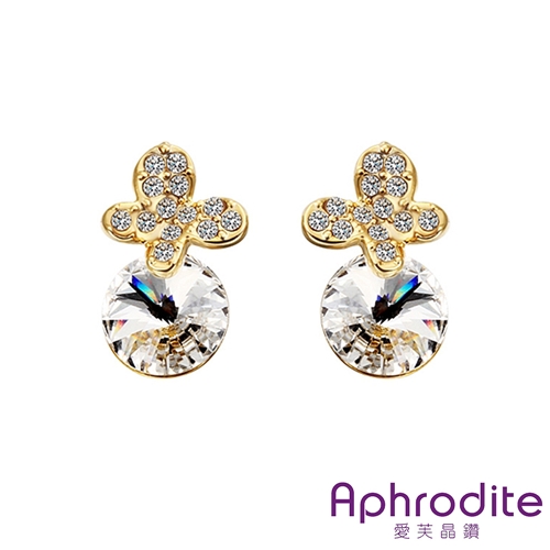 [快速出貨]蝴蝶飛舞水晶造型水鑽耳環(黃金色)*愛芙晶鑽* |