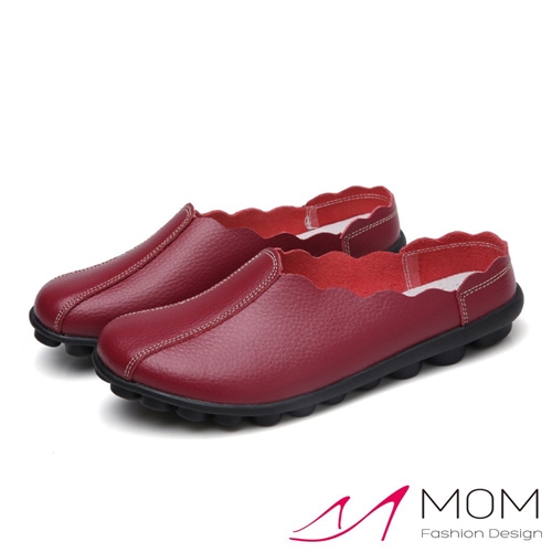 真皮小圓頭時尚花邊鞋口包頭舒適軟底豆豆拖鞋 酒紅 |