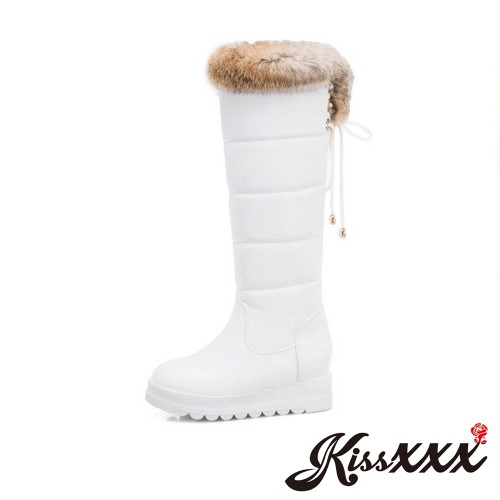 毛圈靴口百搭平底內增高時尚保暖造型雪靴 白 |