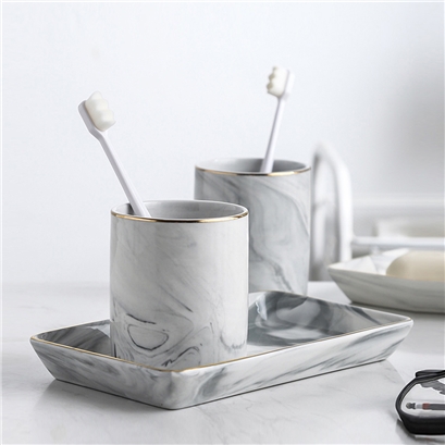 北歐風時尚大理石紋洗漱刷牙漱口杯收納盤 6款任選 |