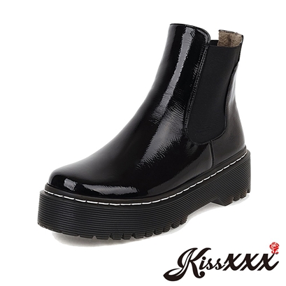 帥氣亮漆皮個性厚底切爾西短靴 黑 |
