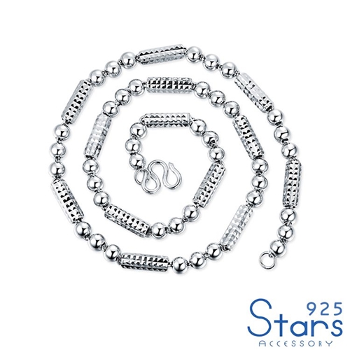 純銀925六菱刻花直筒圓珠串飾個性項鍊*925 STARS* |