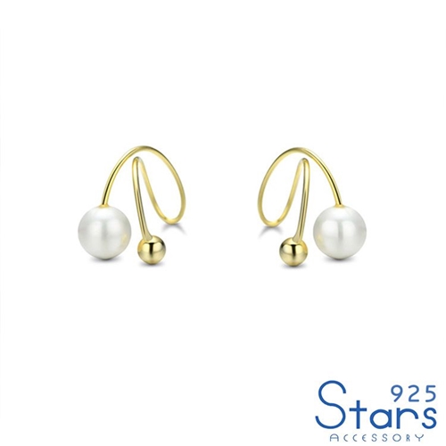 純銀925無耳洞時尚幾何線條珍珠造型耳夾 耳骨夾*925 STARS* |