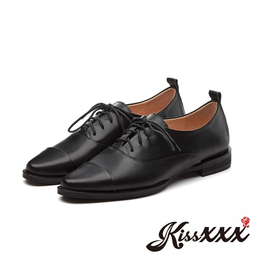 真皮時尚尖頭低跟德比鞋 黑 |