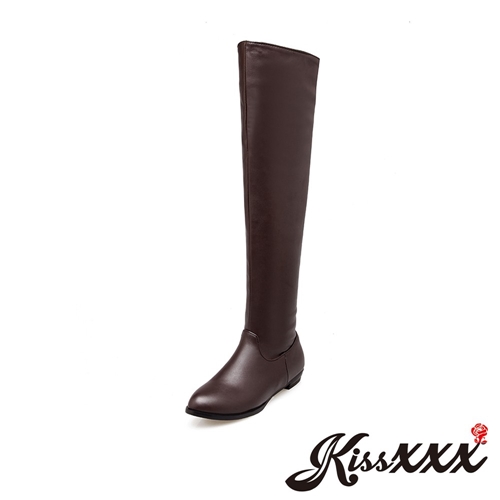 純色優雅小尖頭低跟騎士風過膝長靴 棕 |