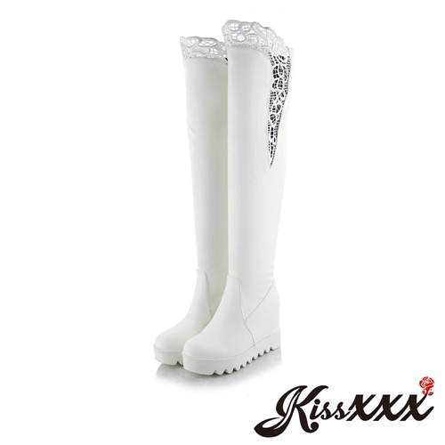 性感蕾絲拼接內增高厚底過膝長靴 白 |