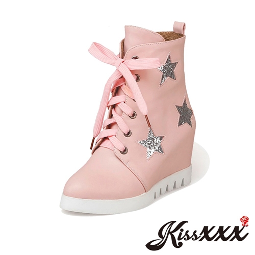 縷空金蔥星星造型內增高平底個性馬丁靴 粉 |