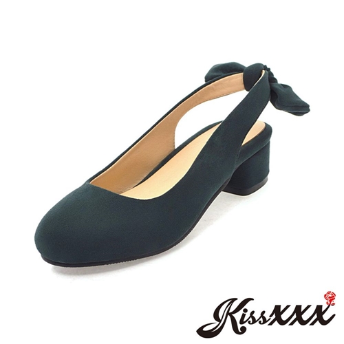 甜美小圓頭蝴蝶結飾包頭粗跟涼鞋 綠 |