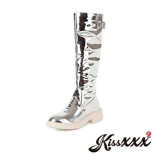 經典復古簡約釦環純色素面造型時尚低跟長靴 銀 |