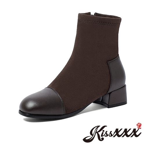 復古小方頭異材質拼接英倫風個性粗跟短靴 咖 |