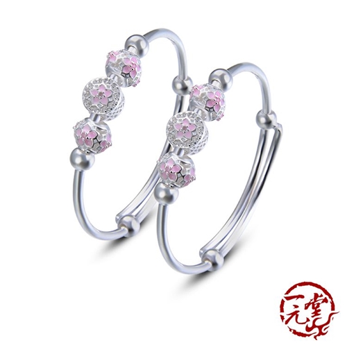 990足銀系列粉色滴釉花朵串珠雙手鐲彌月禮 嬰兒寶寶手鐲 ±21.3g*一元堂* |