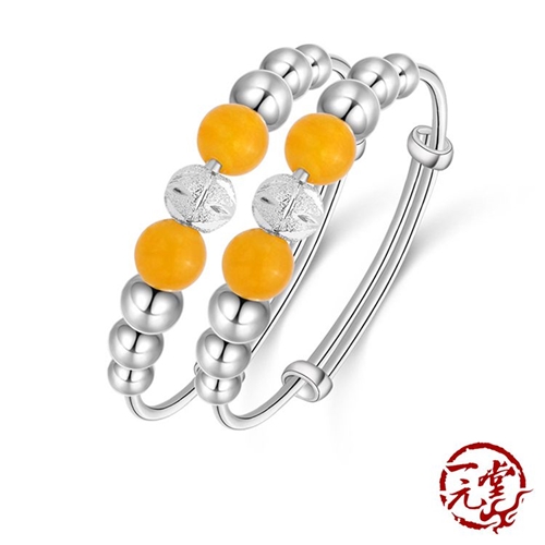 990足銀系列仿黃玉瓍磨砂串珠雙手鐲彌月禮 嬰兒寶寶手鐲 ±18.2g*一元堂* |
