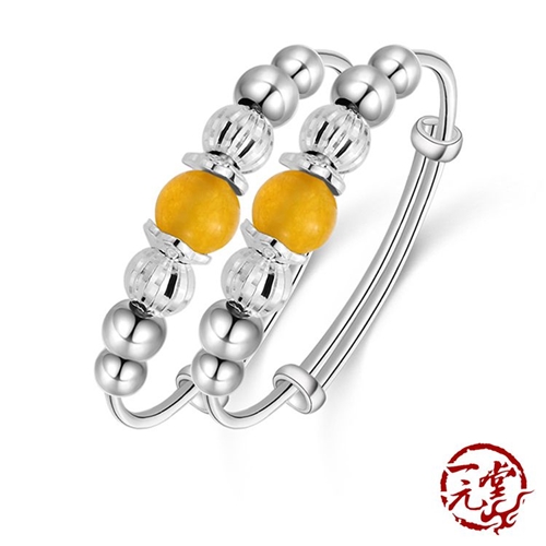 990足銀系列仿黃玉瓍花形串珠雙手鐲彌月禮 嬰兒寶寶手鐲 ±16.3g*一元堂* |