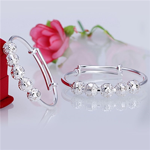 990足銀系列縷空五串珠雙手鐲彌月禮 嬰兒寶寶手鐲 ±39.6g*一元堂* |