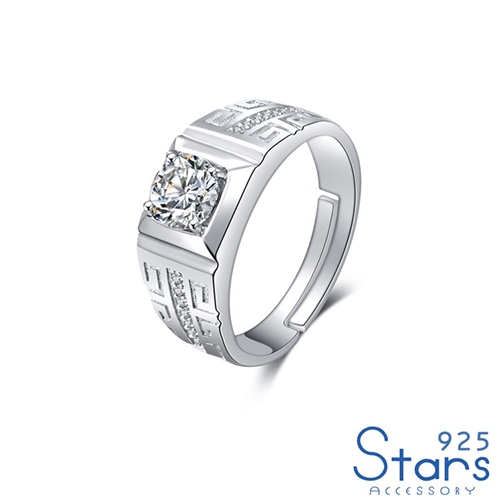純銀925個性霸氣閃耀鋯石時尚指環開口戒戒指 *925 STARS* |