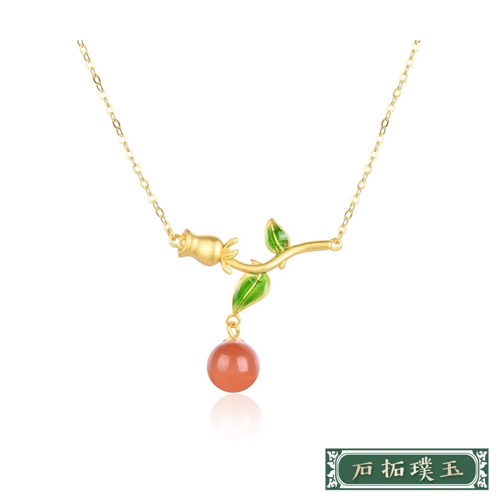 純銀925古法金典雅單枝玫瑰南紅珠造型項鍊 *石拓璞玉* |