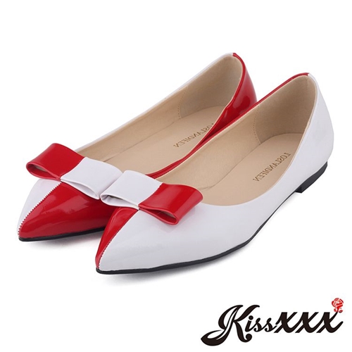 尖頭撞色拼接蝴蝶結飾時尚低跟單鞋 多色任選 |