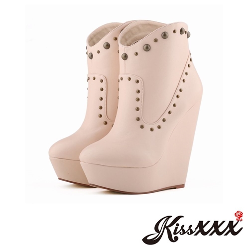 時尚復古圓頭龐克鉚釘防水台楔型坡跟短靴 多色任選 |