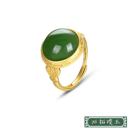 純銀925古法金復古圓形碧玉造型開口戒 *石拓璞玉* |