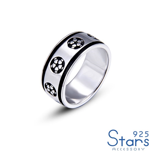 純銀925個性足球圖樣寬版造型戒指*925 STARS* |
