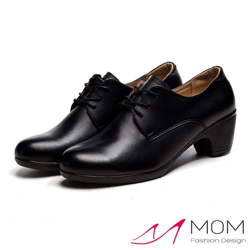 真皮復古繫帶造型3孔粗跟休閒鞋 黑 |