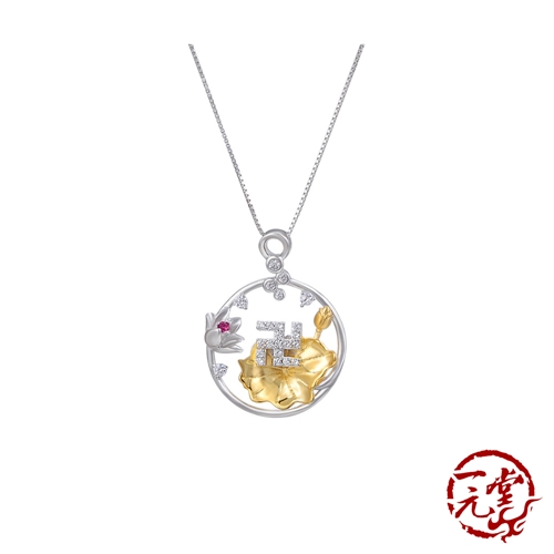 純銀925微鑲美鑽金色蓮花卍字縷空造型吊墜*一元堂* |
