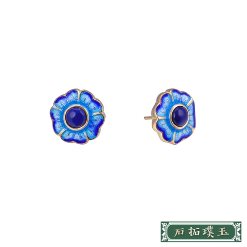 純銀925民族風彩色琺瑯天然石花朵造型耳環 6款任選*石拓璞玉* |