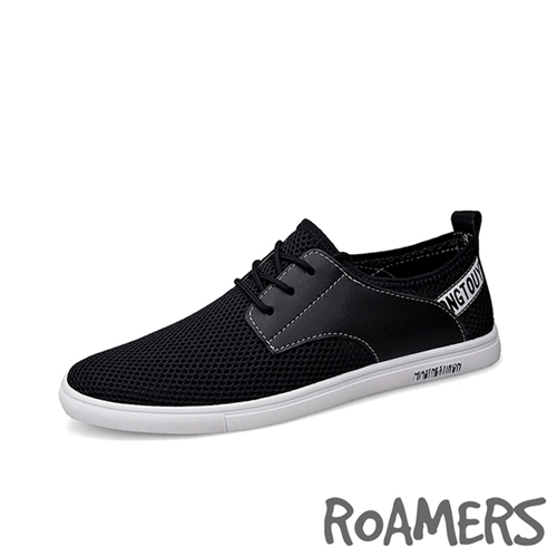 異材質拼接透氣網布經典平底休閒鞋 黑 |