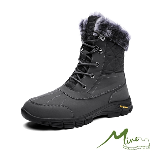 保暖機能防潑水時尚拼接休閒雪靴 灰 |