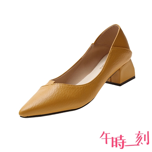 不對稱尖頭淺口折疊交叉設計款塊跟鞋 黃 |