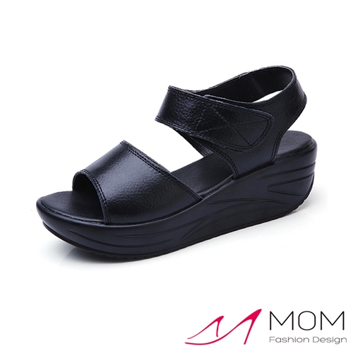 真皮素面魚口露趾舒適輕量美腿搖搖涼鞋 黑 |