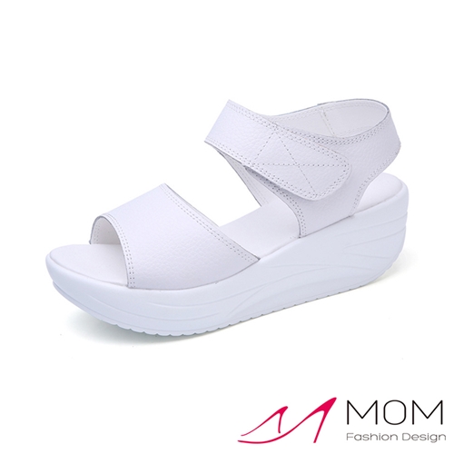 真皮素面魚口露趾舒適輕量美腿搖搖涼鞋 白 |