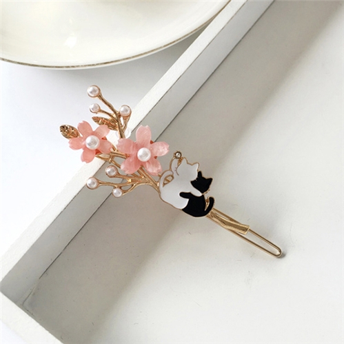 [快速出貨] 韓國設計唯美粉色花朵可愛貓咪造型髮夾*MISA* |