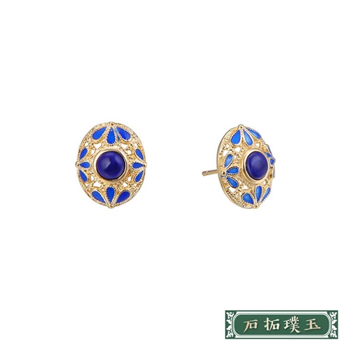 純銀925民族風景泰藍彩色鑲嵌天然石橢圓造型耳環 4款任選*石拓璞玉* |