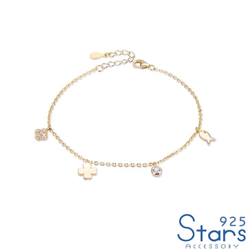 純銀925微鑲美鑽可愛小魚四葉草吊墜造型腳鍊*925 STARS* |